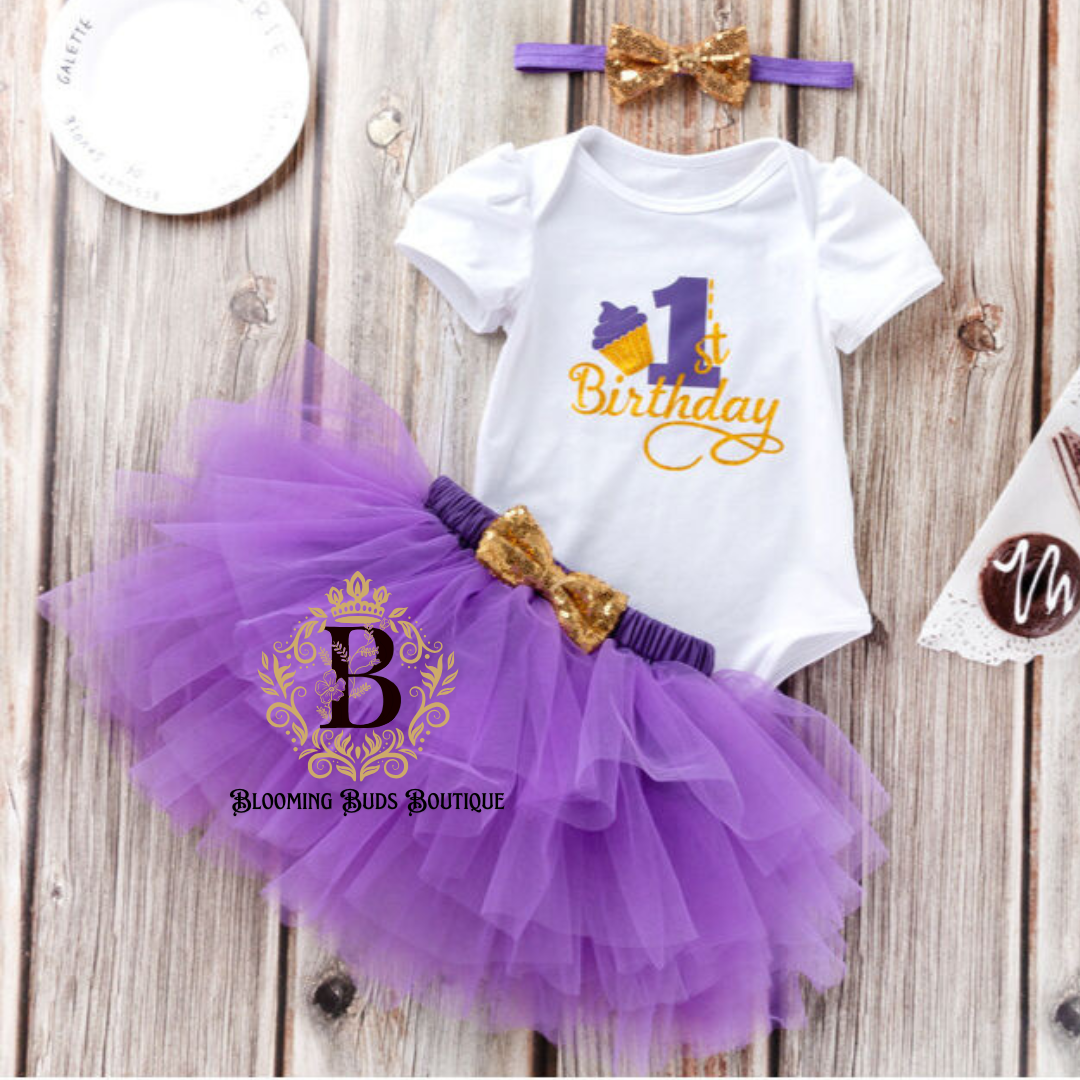 CUPCAKE 1ST BIRTHDAY BODYSUIT & MESH TUTU SKIRTS & HEADBAND