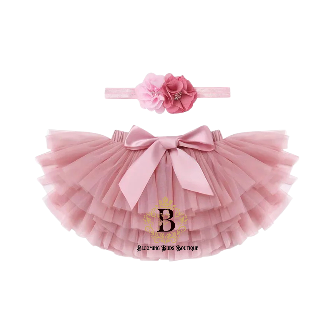Girl Baby Tulle Tutu Skirt & Flower Headband