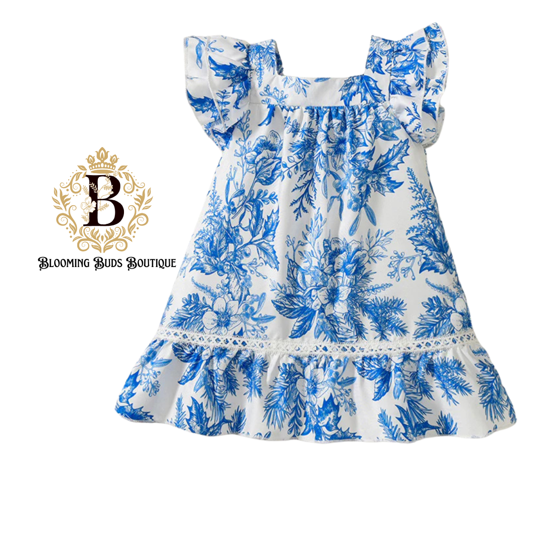 Girls Blue Flower Print Summer Dress