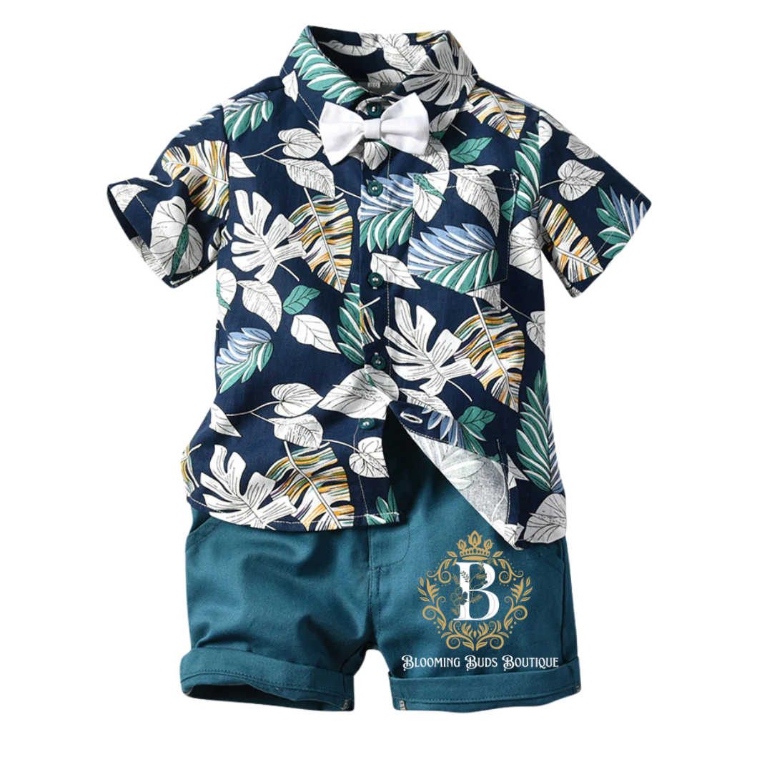 Toddler Boys 2 Pc Set Printed Bow Shirt And Solid Color Shorts