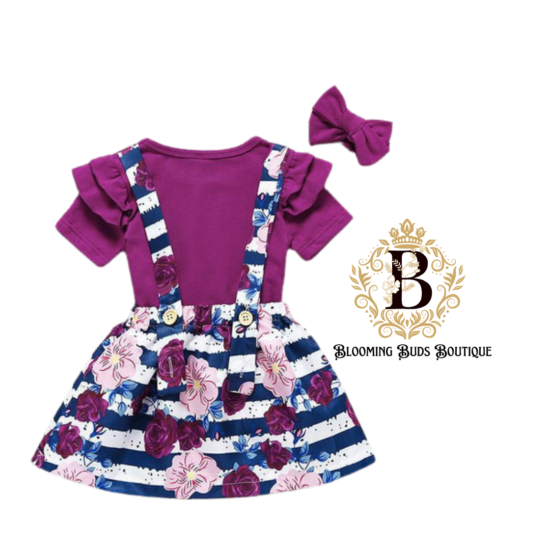 Toddler Girl 3pc Ruffle Bodysuit & Floral Printed Skirt With Headband